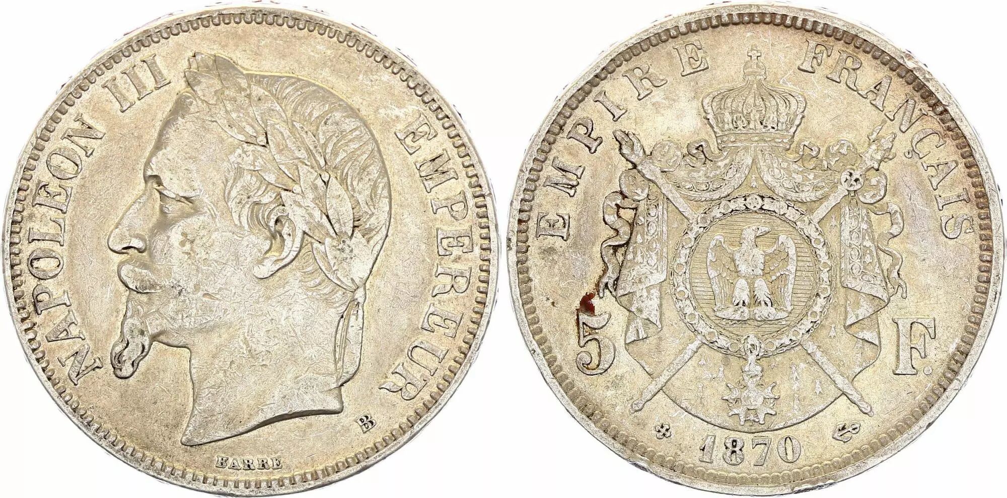 Home > > France 5 Francs - Napoléon III - Laurelled Head - Strasbourg - 1870
