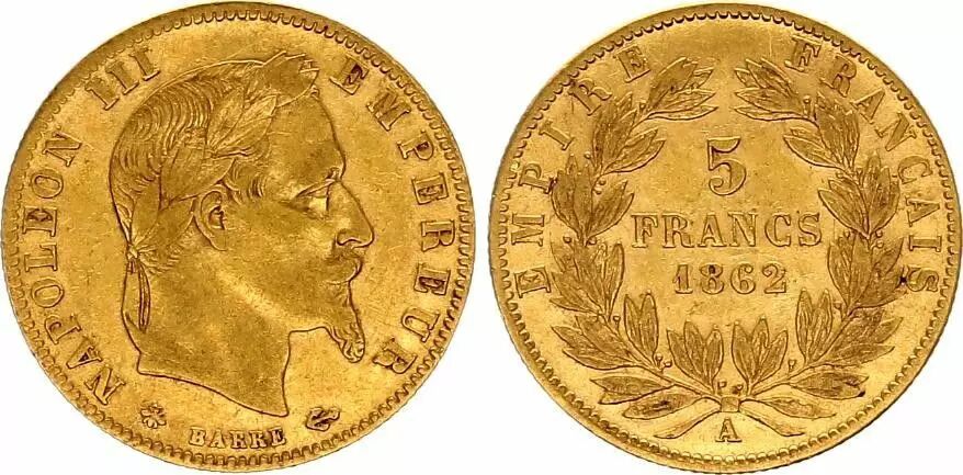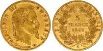 Pièce France 5 Francs Napoléon III - Tête Laurée 1862 A