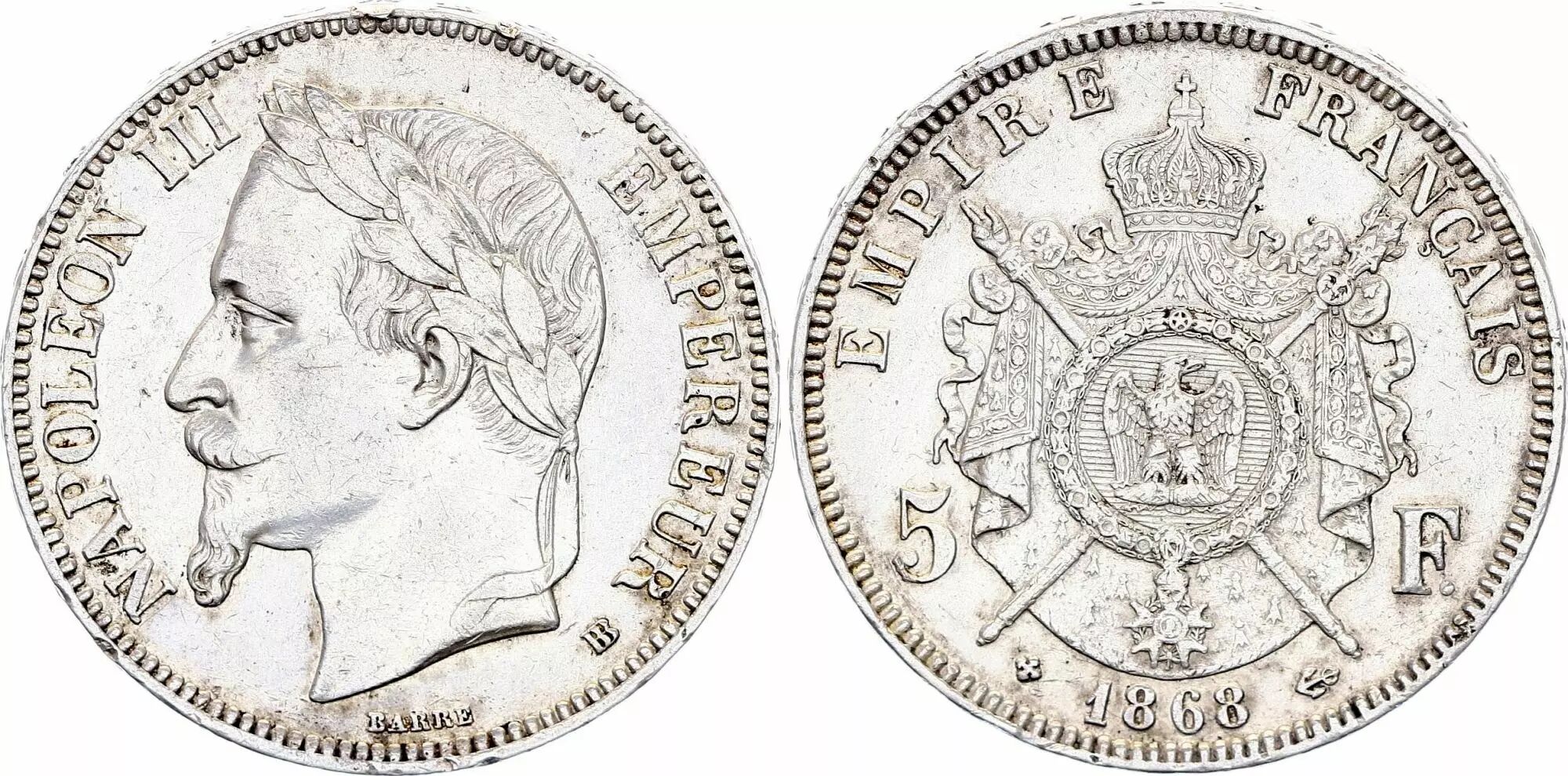 Home > > France 5 Francs - Napoléon III - Tête laurée - BB Strasbourg - 1868