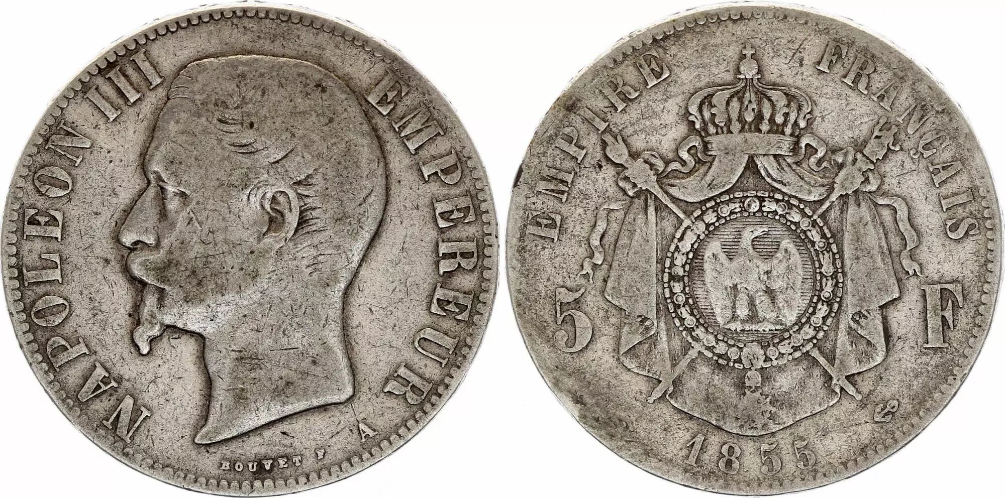 Accueil > Archivage > France 5 Francs Napoléon III - Tête nue 1855 A Paris - Argent - TB