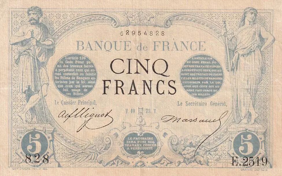 Billet France 5 Francs - Noir - 10-05-1873 - Série F.2519