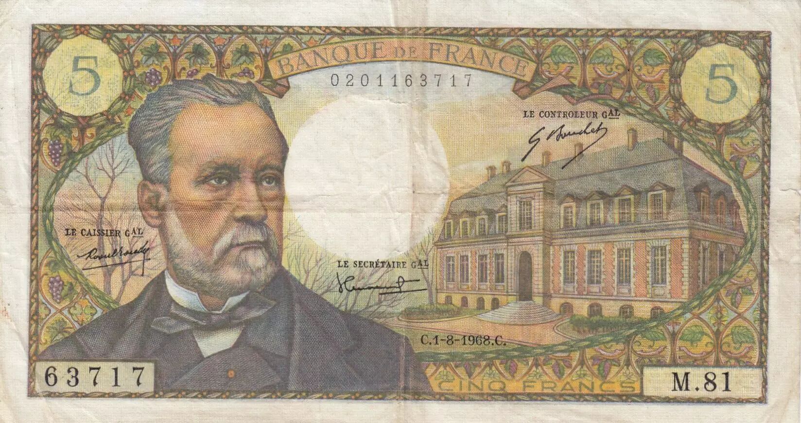Accueil > Archivage > France 5 Francs Pasteur 01-08-1968 - Série M.81
