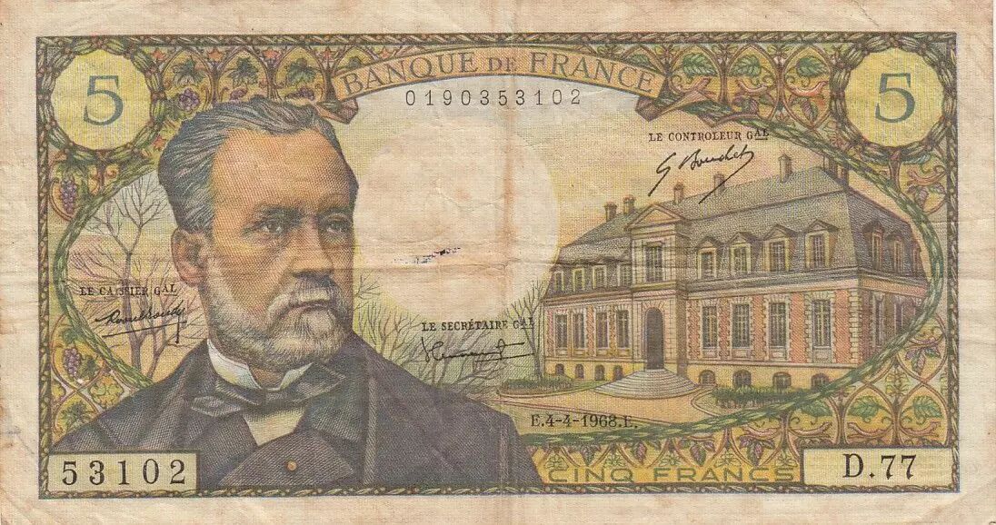 Banknote France 5 Francs Pasteur - 04-04-1968 - Serial D.77