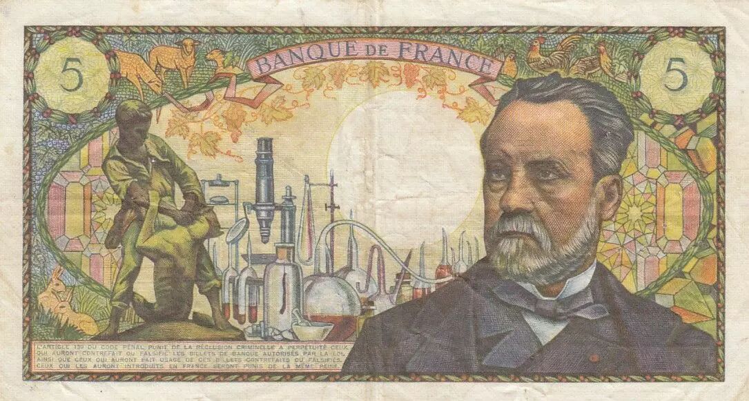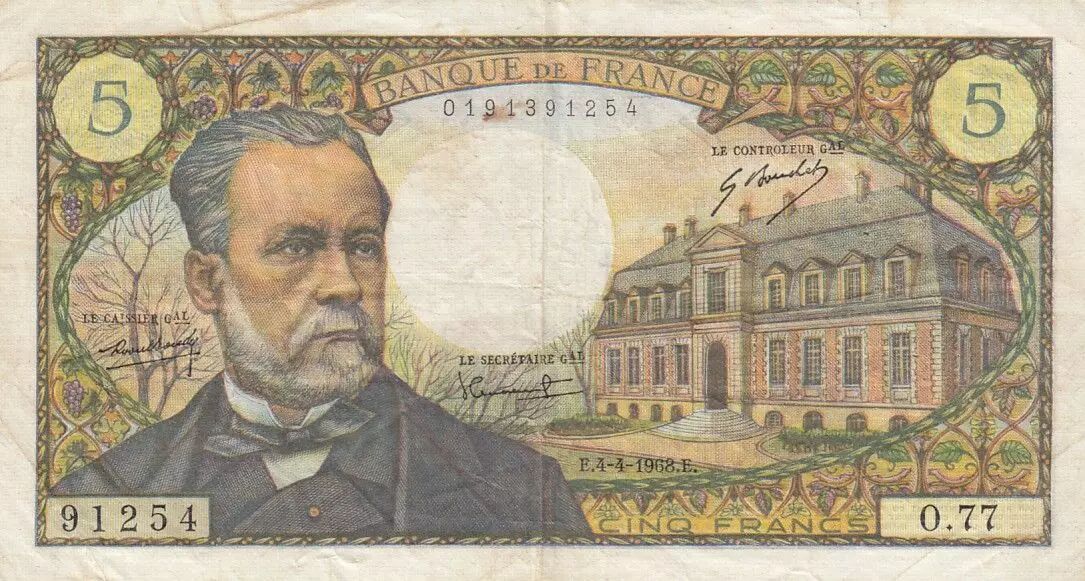 Banknote France 5 Francs Pasteur - 04-04-1968 - Serial O.77