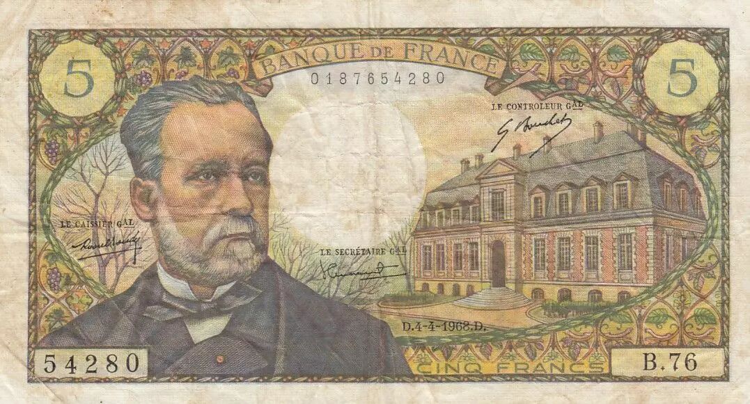 Billet France 5 Francs Pasteur - 04-04-1968 - Série B.76