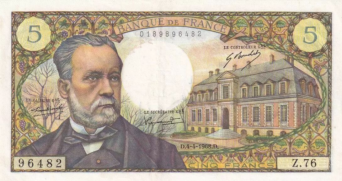 Billet France 5 Francs Pasteur - 04-04-1968 - Série Z.76