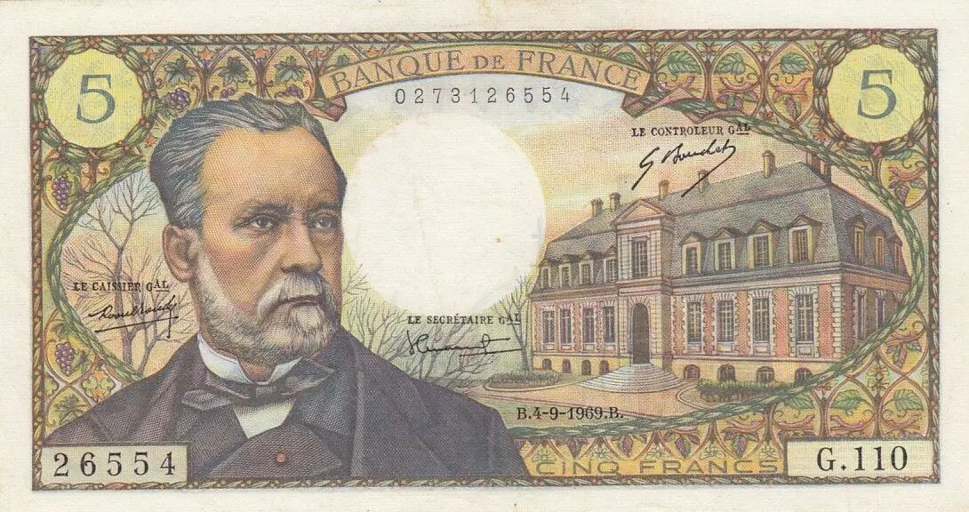 Banknote France 5 Francs - Pasteur 04-09-1969 - Serial G.110