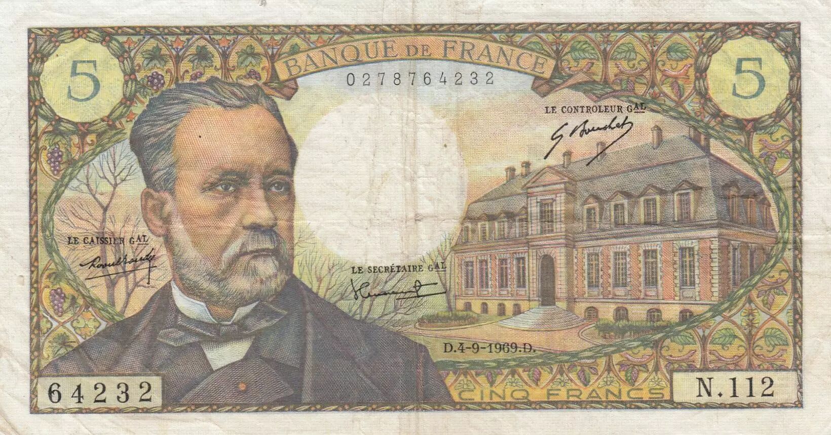 Billet France 5 Francs Pasteur 04-09-1969- Série N.112