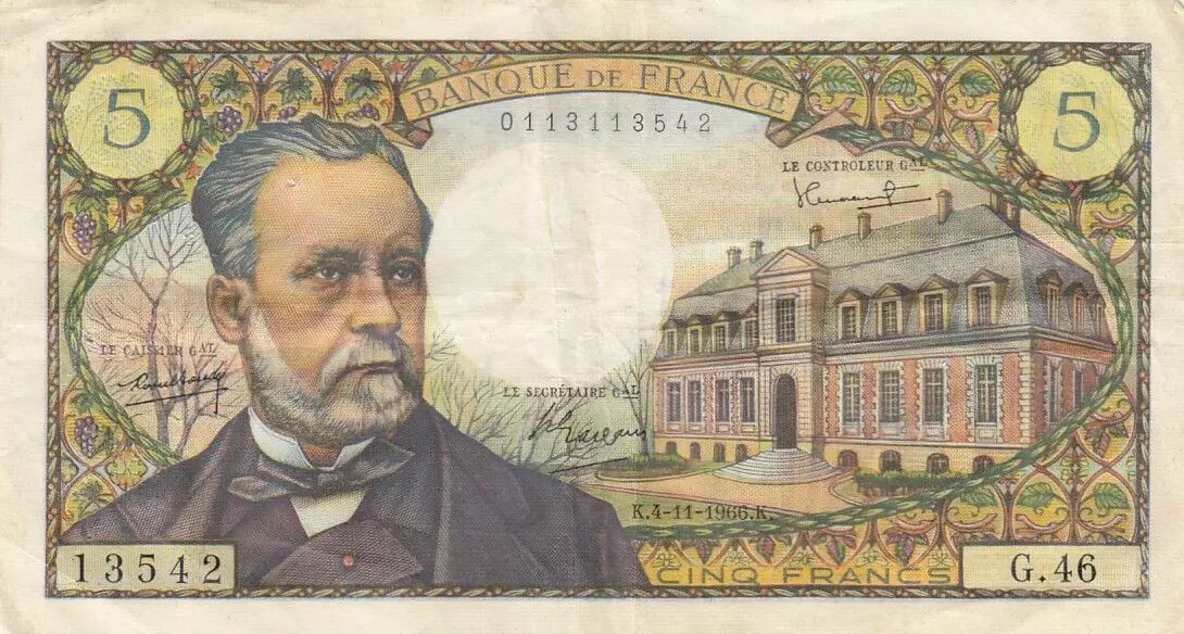 Banknote France 5 Francs Pasteur - 04-11-1966 - Serial G.46