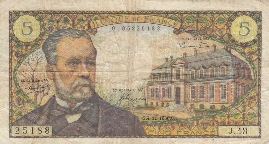 Billet France 5 Francs Pasteur - 04-11-1966 - Série J.43