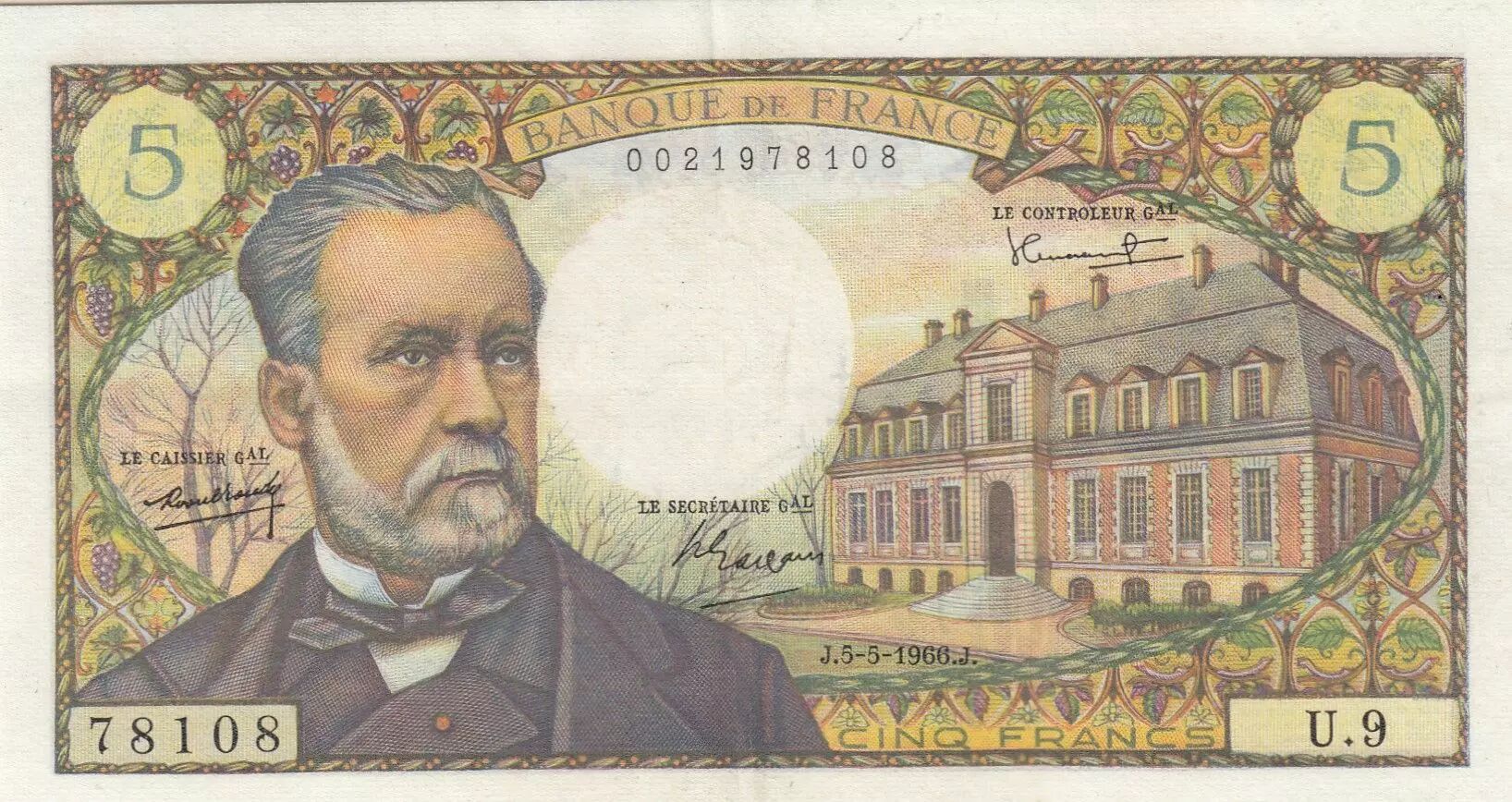 Banknote France 5 Francs - Pasteur - 05-05-1966 - Serial U.9