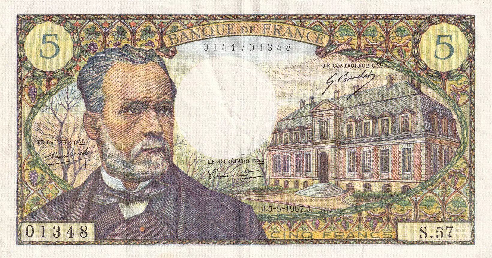 Accueil > Archivage > France 5 Francs - Pasteur - 05-05-1967 - Série S.57 - F.61.05