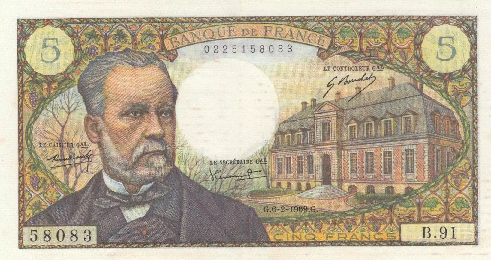 Billet France 5 Francs - Pasteur - 06-02-1969 - Série B.91