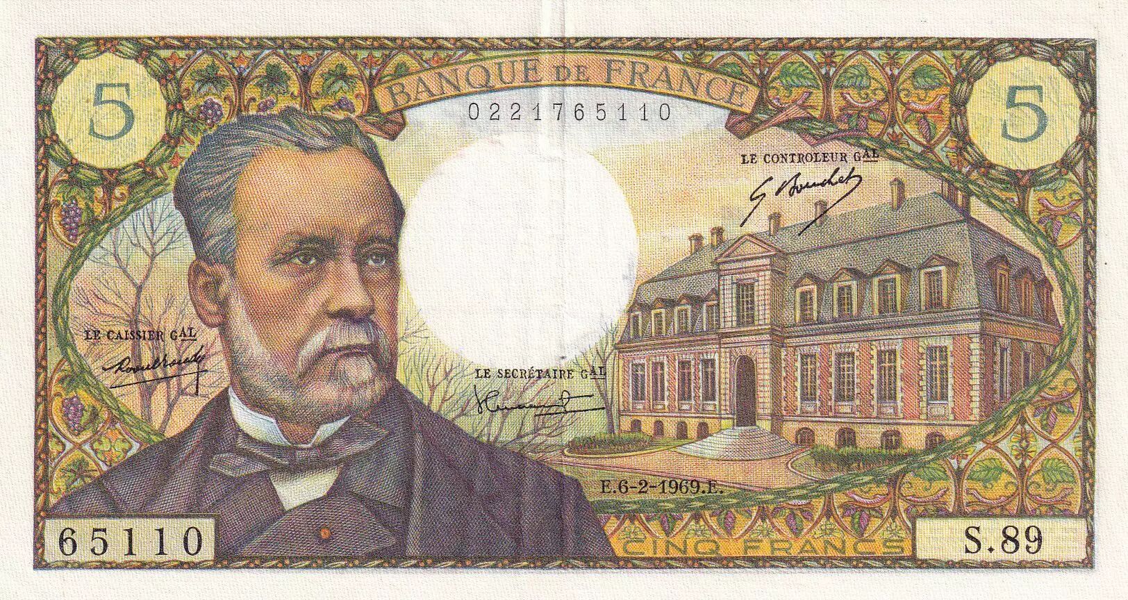 Billet France 5 Francs - Pasteur - 06-02-1969 - Série S.89 - F.61.09