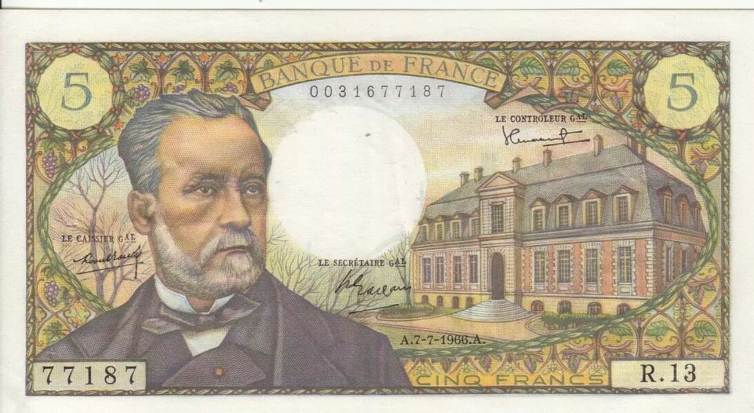 Banknote France 5 Francs Pasteur - 07-07-1966 - Serial R.13