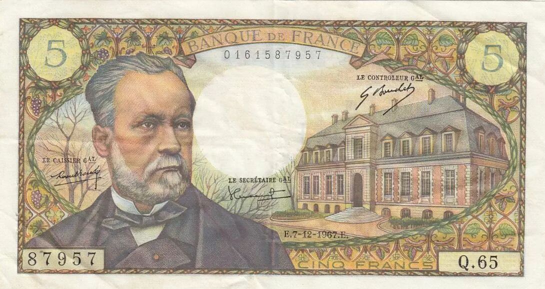 Banknote France 5 Francs Pasteur - 07-12-1967 - Serial Q.65