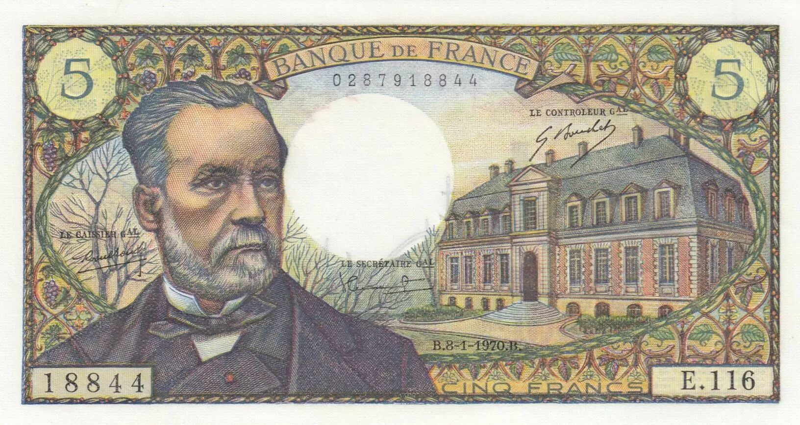Banknote France 5 Francs - Pasteur - 08-01-1970 - Serial E.116