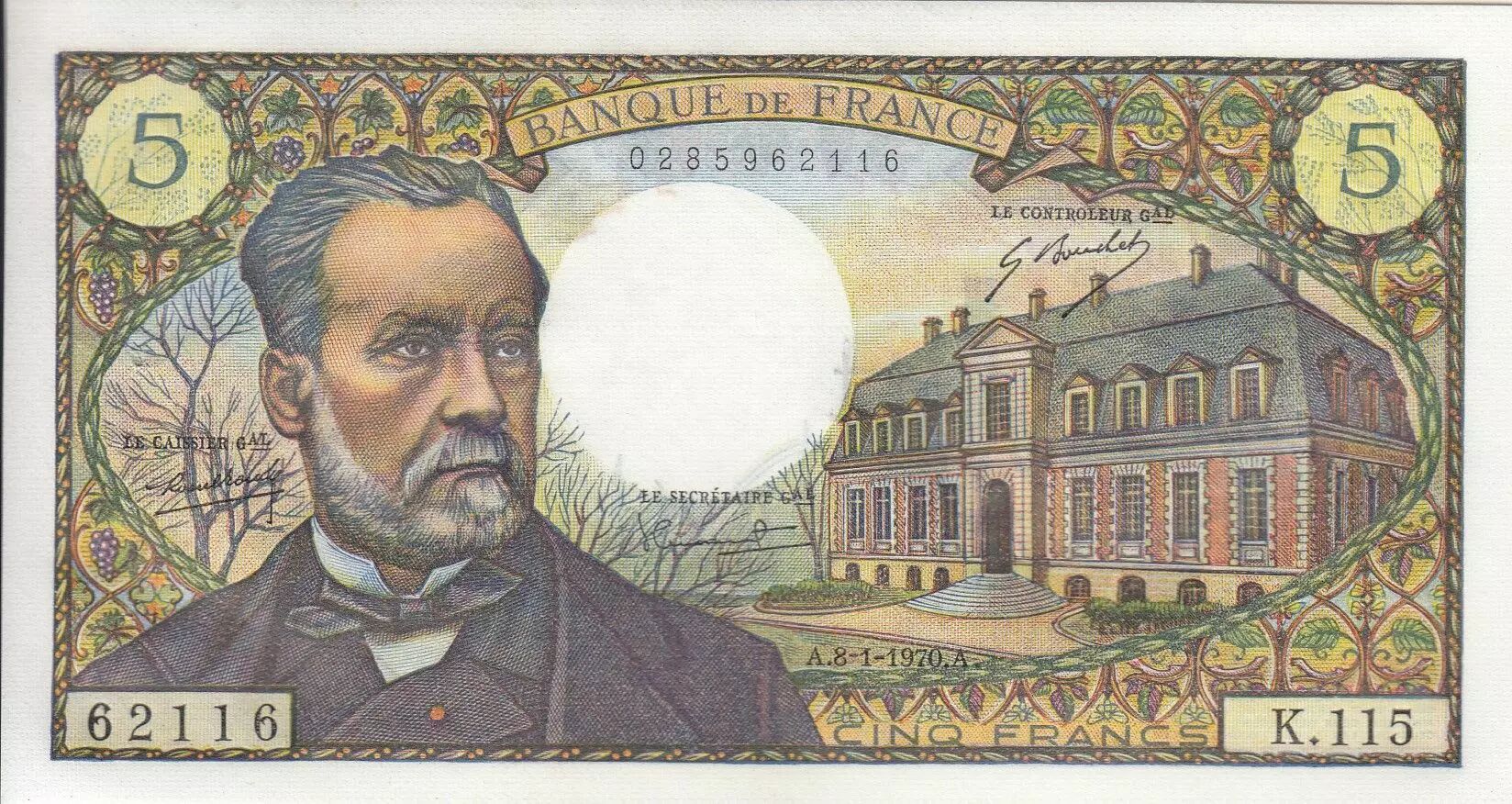 Banknote France 5 Francs - Pasteur - 08-01-1970 - Serial K.115