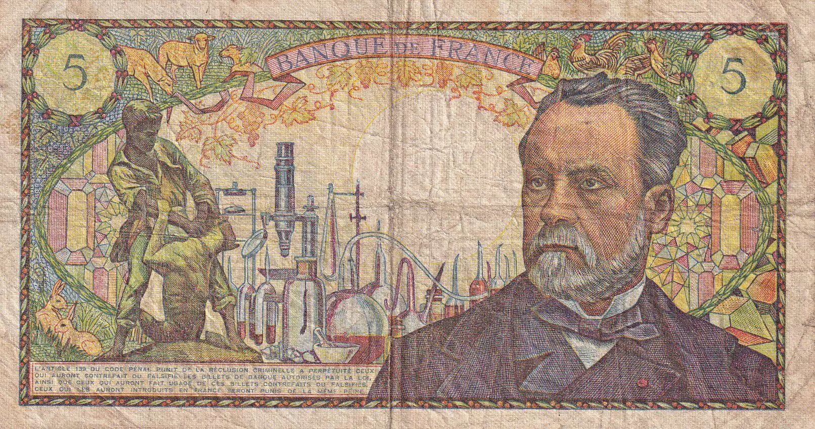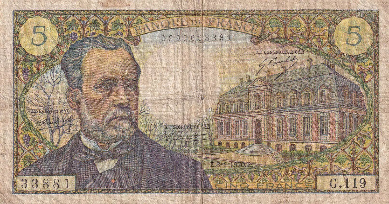 Billet France 5 Francs - Pasteur - 08-01-1970 - Série G.119 - F.61.12