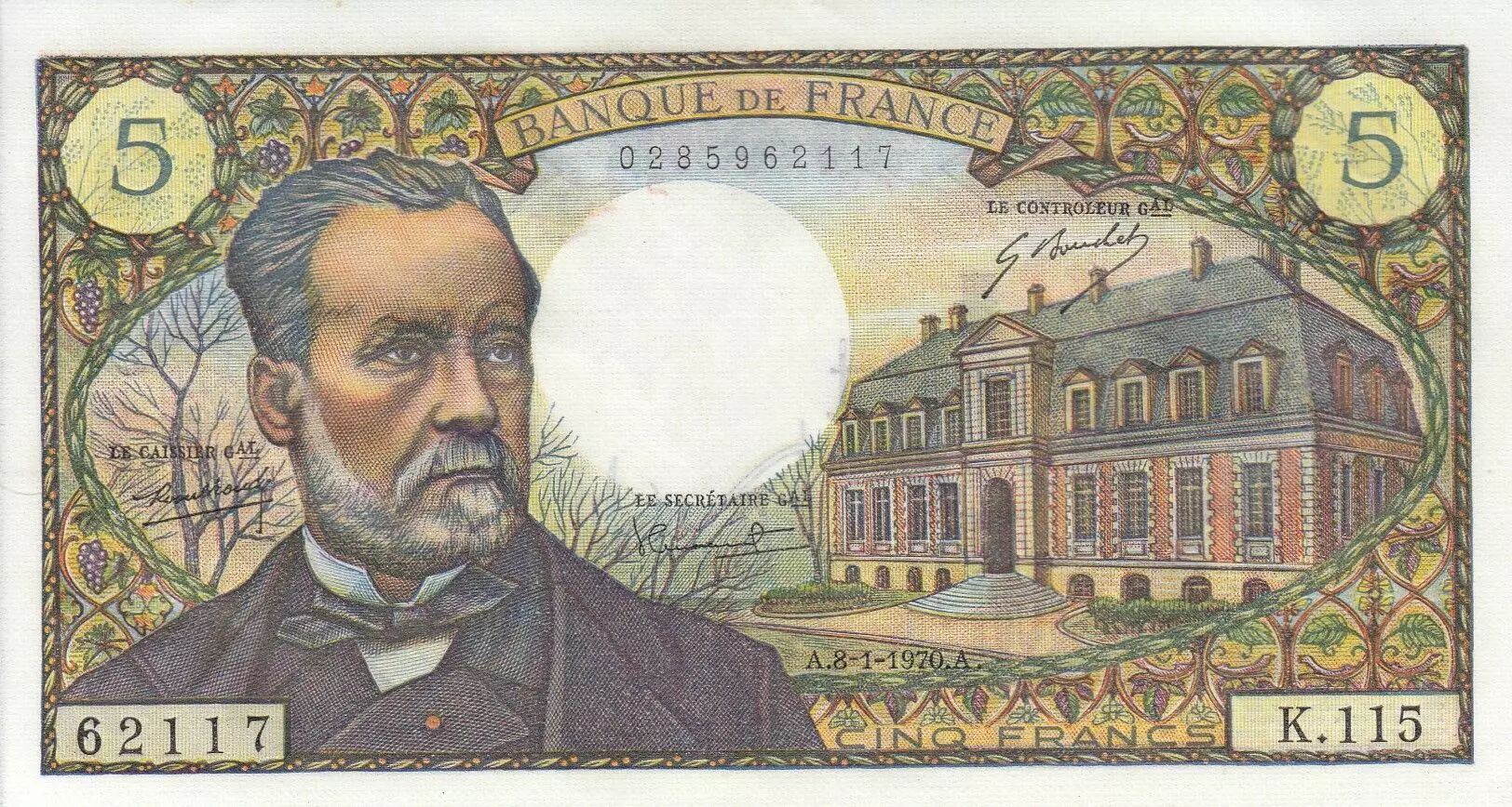 Ce billet de cinq francs est un témoignage de l'histoire de la France et de sa contribution à la science. Il rend hommage à Louis Pasteur et à l'Institut Pasteur, symboles de l'excellence scientifique française.