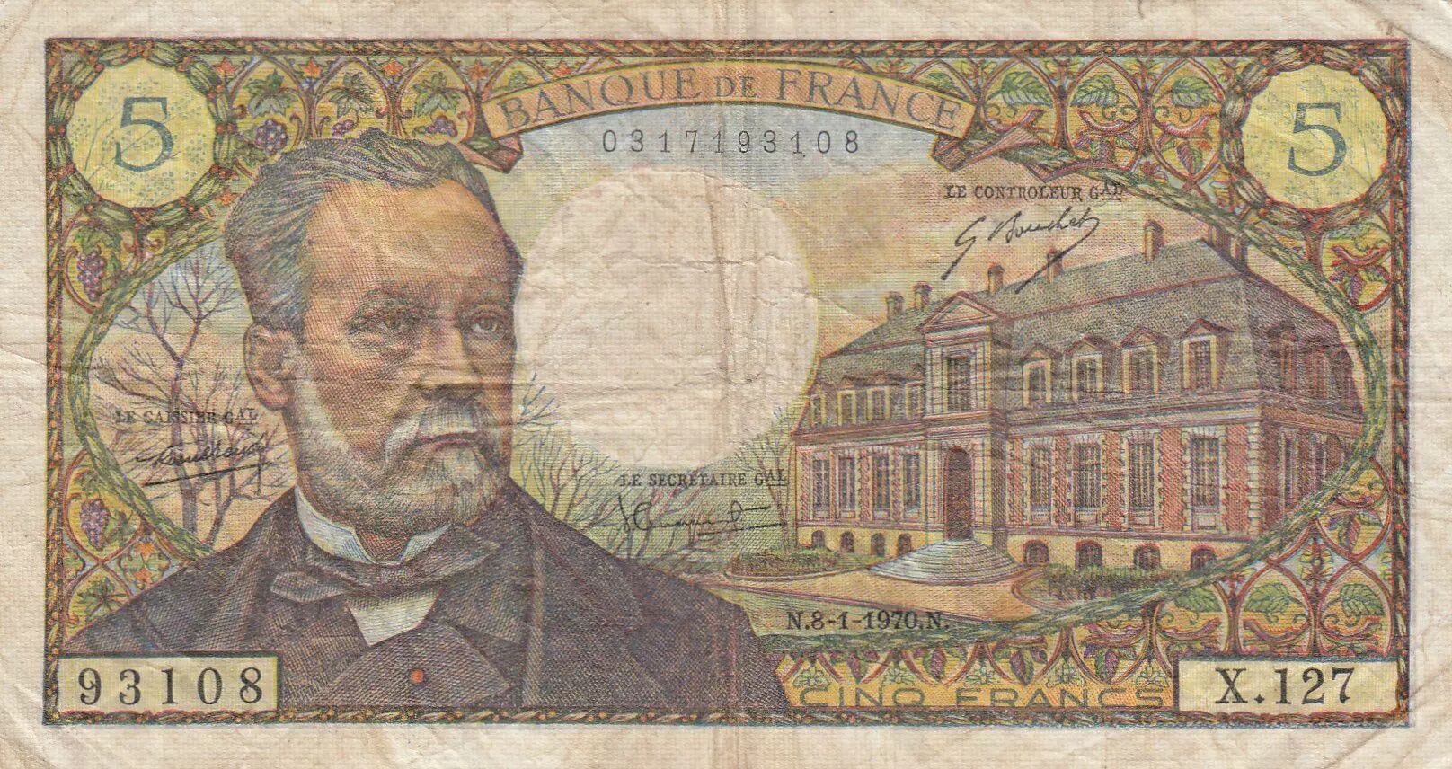 Billet France 5 Francs - Pasteur - 08-01-1970 - Série X.127 - F.61.12