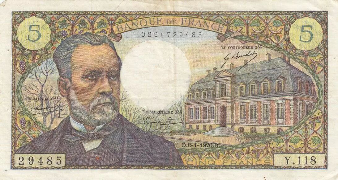 Billet France 5 Francs Pasteur - 08-01-1970 - Série Y.118