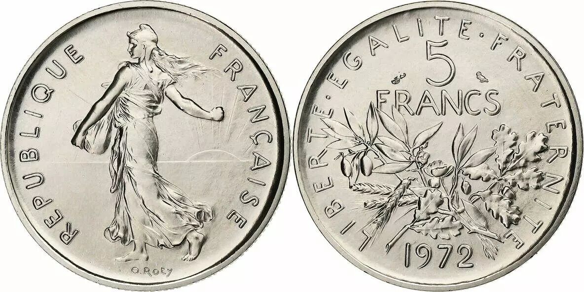 La pièce de 5 Francs Semeuse, frappée en 1972, est une pièce de monnaie française. Sa valeur nominale est de 5 francs.
