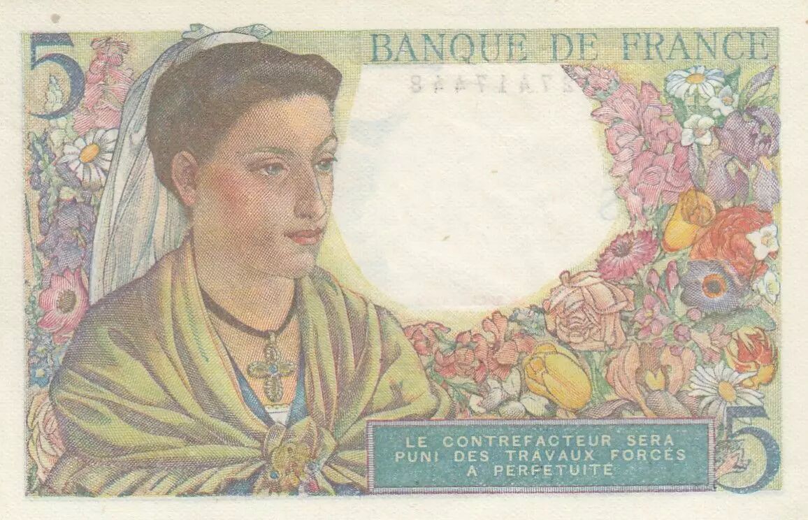 Banknote France 5 Francs - Shepherd - 05-04-1945 - Serial W.131