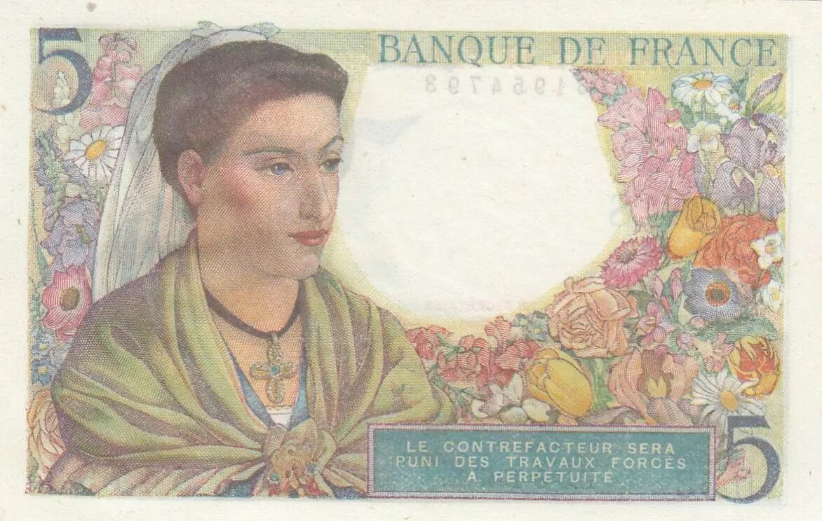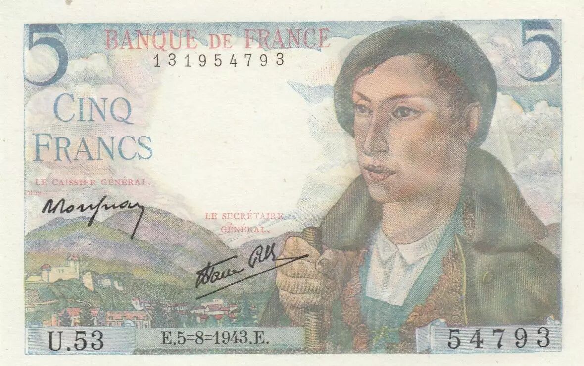 Banknote France 5 Francs - Shepherd - 05-08-1943 - Serial U.53