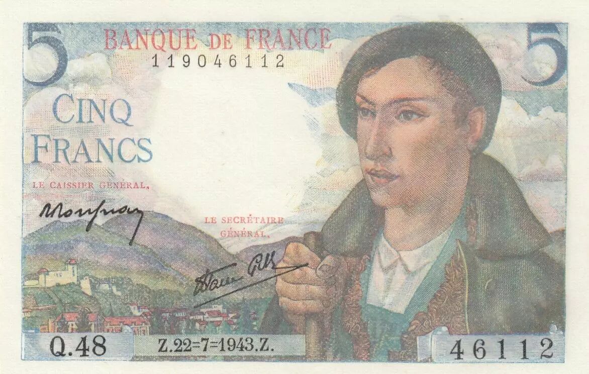 Banknote France 5 Francs - Shepherd - 22-07-1943 - Serial Q.48
