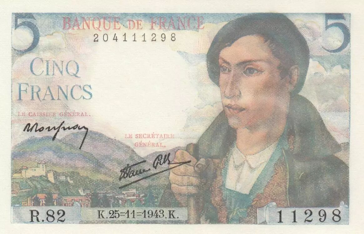 Banknote France 5 Francs - Shepherd - 25-11-1943 - Serial R.82