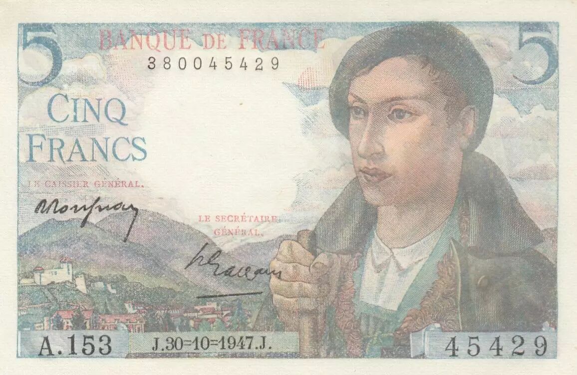 Banknote France 5 Francs - Shepherd - 30-10-1947 - Serial A.153