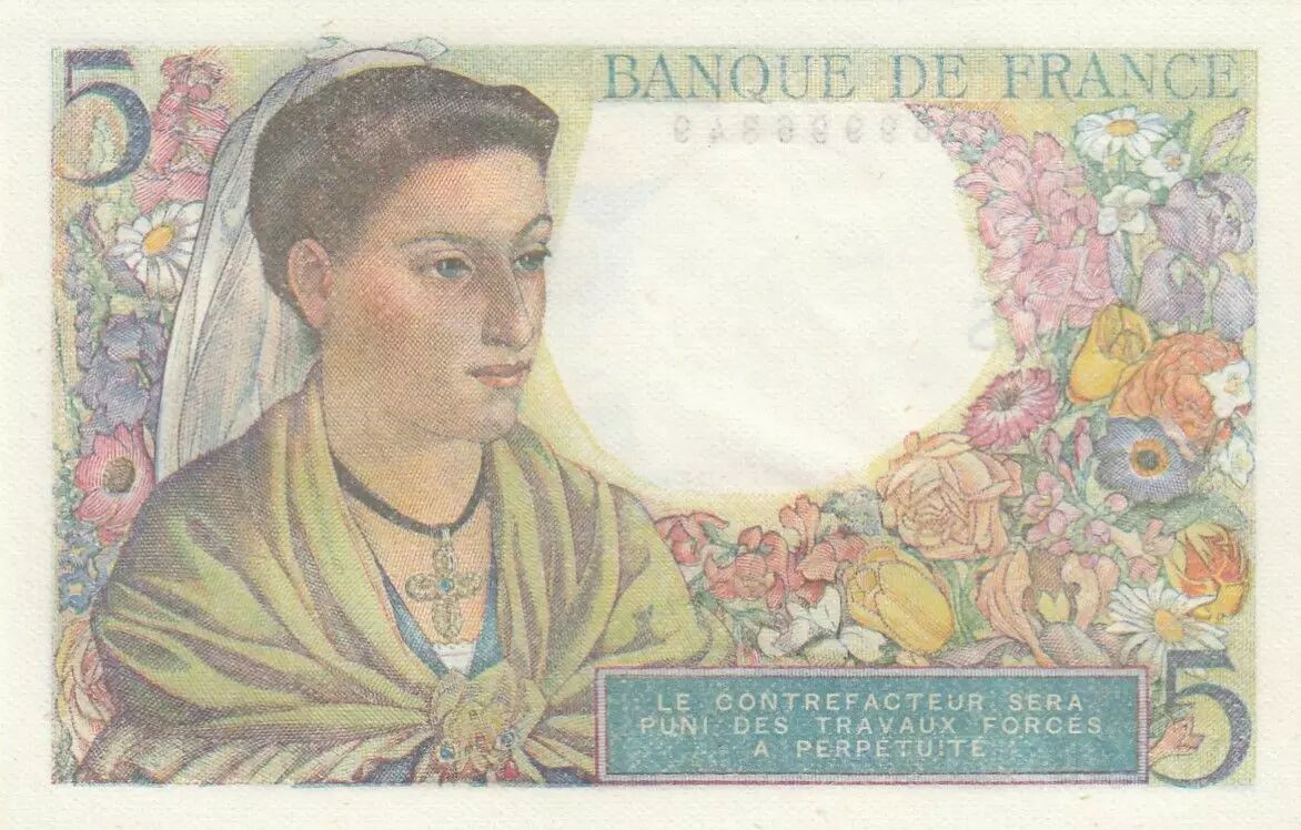 Banknote France 5 Francs - Shepherd - 30-10-1947 - Serial W.148