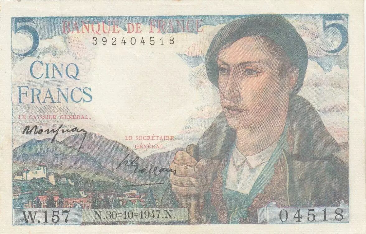 Banknote France 5 Francs - Shepherd - 30-10-1947 - Serial W.157