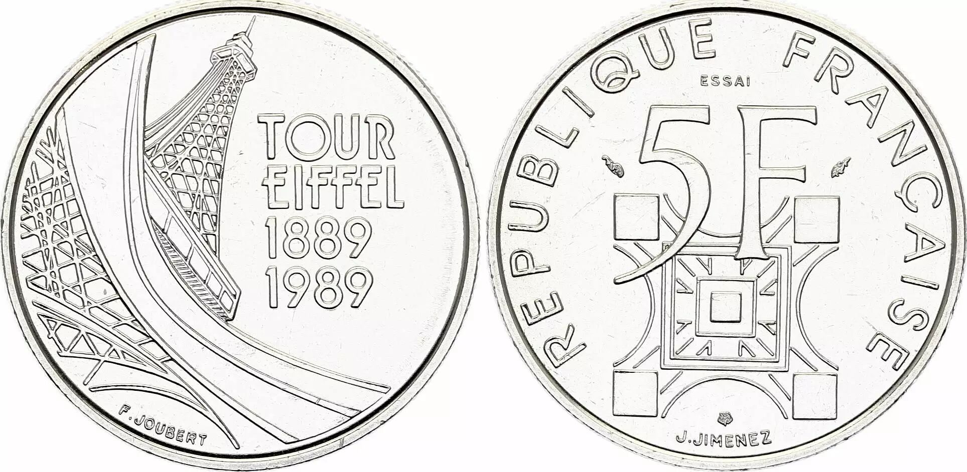 Pièce France 5 Francs, Tour Eiffel - 1989 Essai