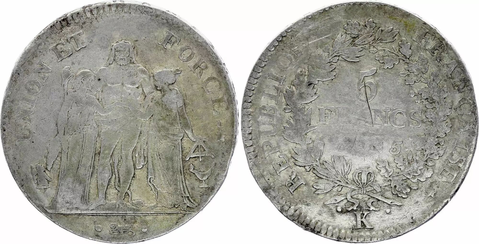 Pièce France 5 Francs - Union et Force - An 5 - K Bordeaux