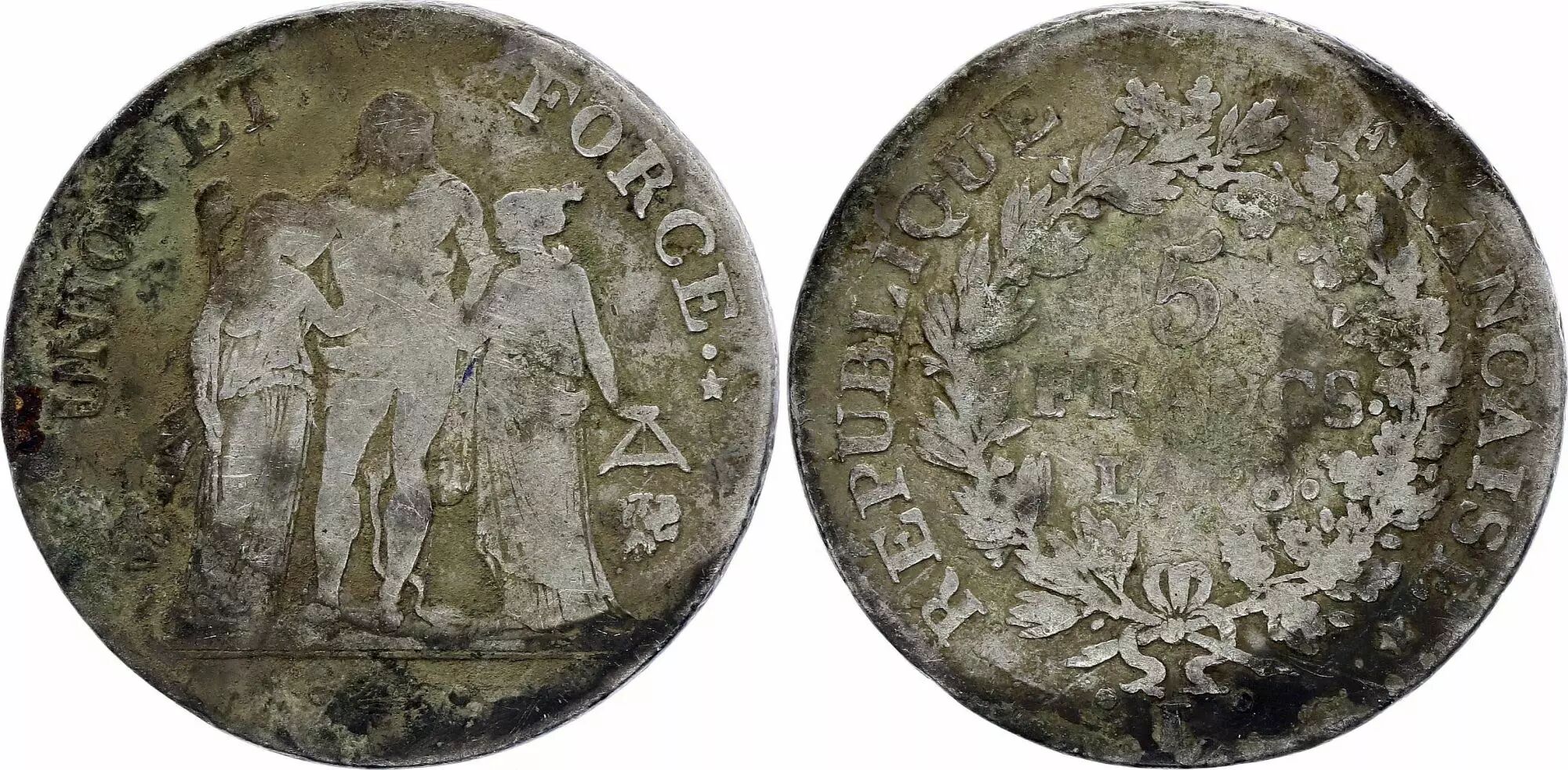 Accueil > Archivage > France 5 Francs - Union et Force - An 8 - L Bayonne