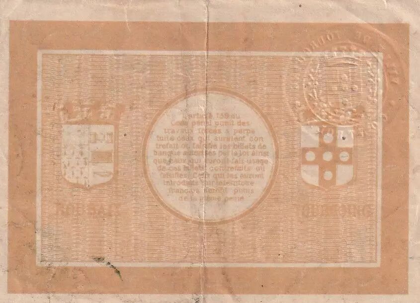 This type of banknote testifies to the local monetary adaptations implemented to compensate for the lack of liquidity during the war, reflecting the economic and social history of the regions concerned.