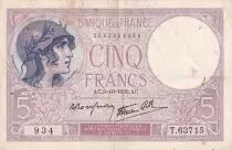 Billet France 5 Francs - Violet - 05-10-1939 - Série T.63715 - F.04.11