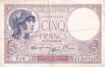 Billet France 5 Francs - Violet - 10-08-1939 - Série V.60754 - F.04.05