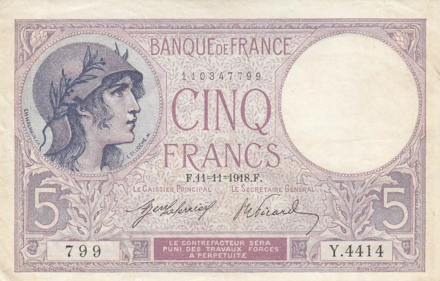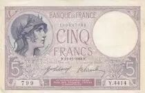 Billet France 5 Francs - Violet - 11-11-1918 - Série Y.4414