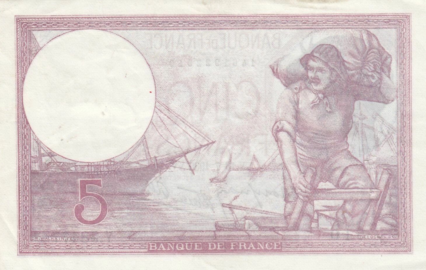 Ce billet de banque a une valeur nominale de 5 francs, unité monétaire de la France à cette époque. Son nom, "Violet", provient probablement de la couleur dominante utilisée dans son design.