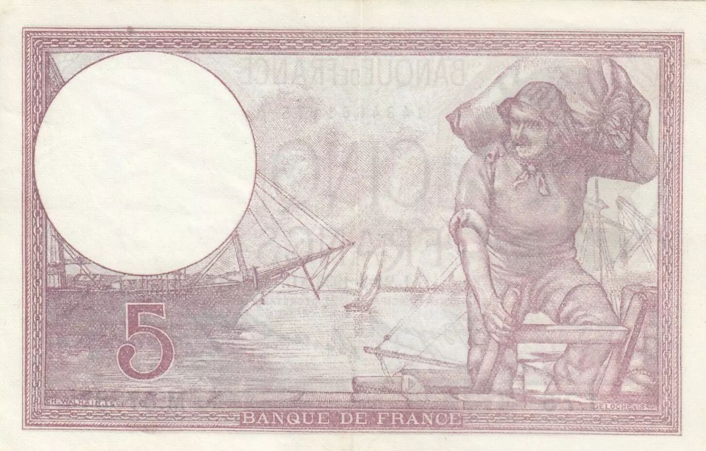 Accueil > Archivage > archivage-Billets Français > France 5 Francs - Violet - 24-08-1933 - Série M.57387