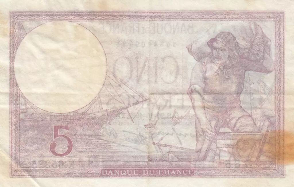 Accueil > Archivage > France 5 Francs Violet - 26-10-1939 -Série K.65385