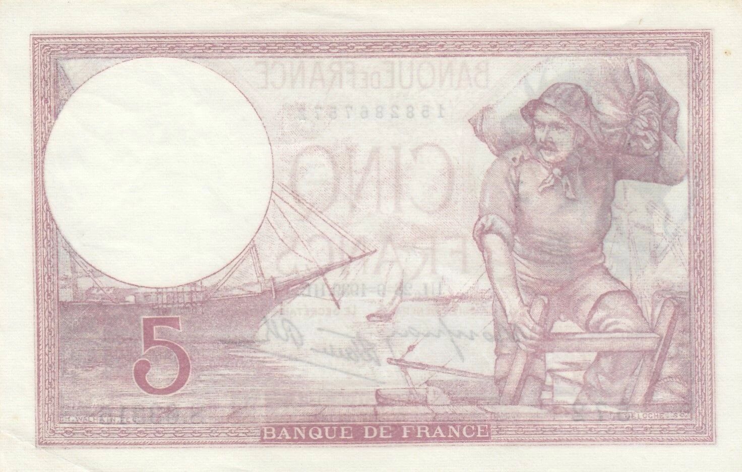 This banknote was issued by France and has a face value of 5 francs. The date of issue printed on the banknote is September 28, 1939. It is a "Violet" type banknote. The specific serial number of this banknote is S.63315.