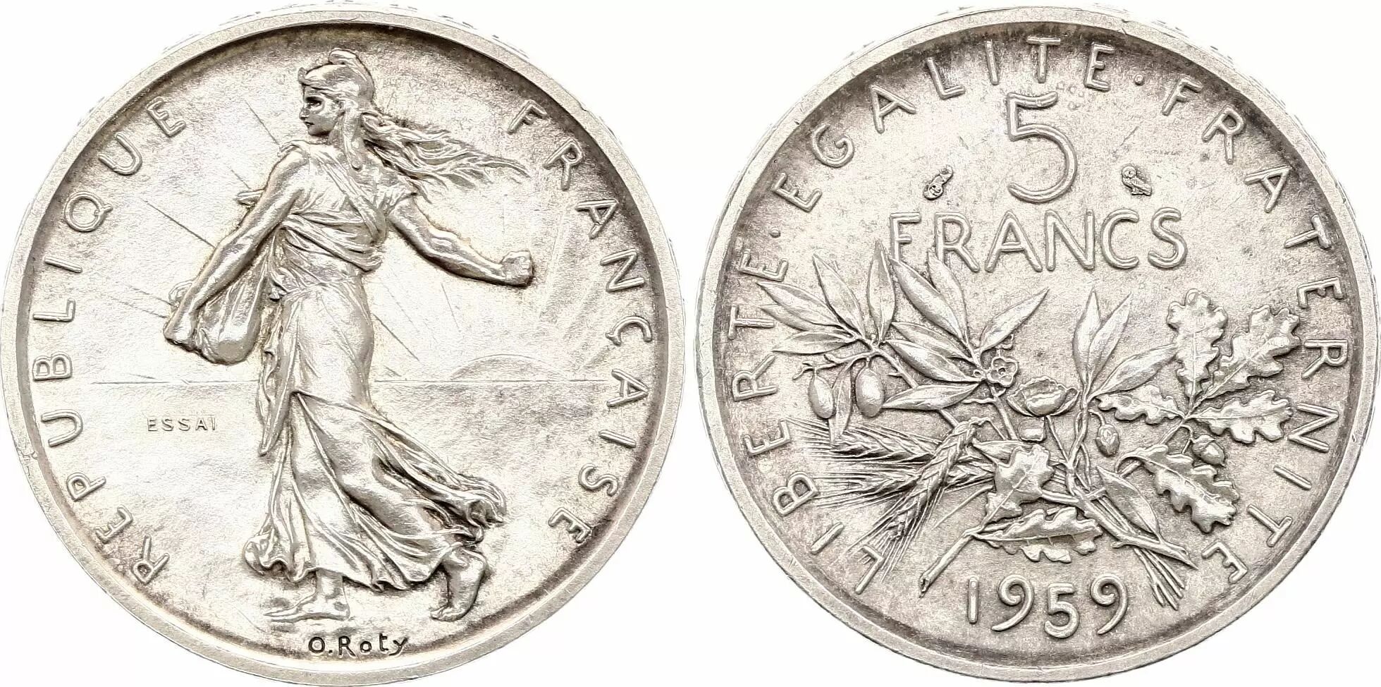 Coin France 5 Francs Woman sowing seed - 1959 - Essai