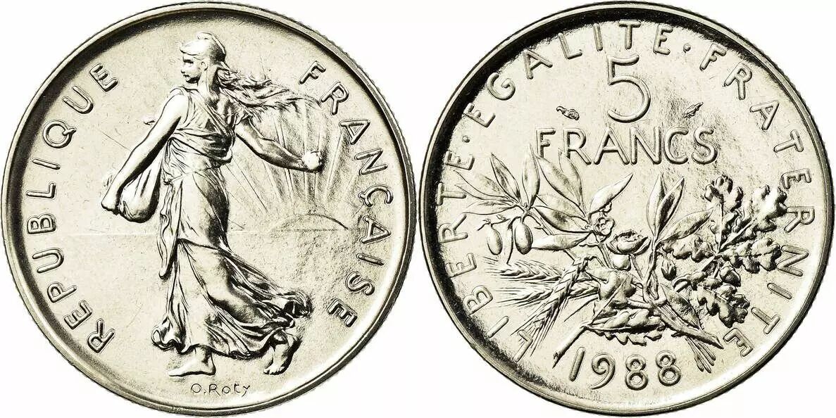 Coin France 5 Francs Woman sowing seed - 1988 - From Box Set