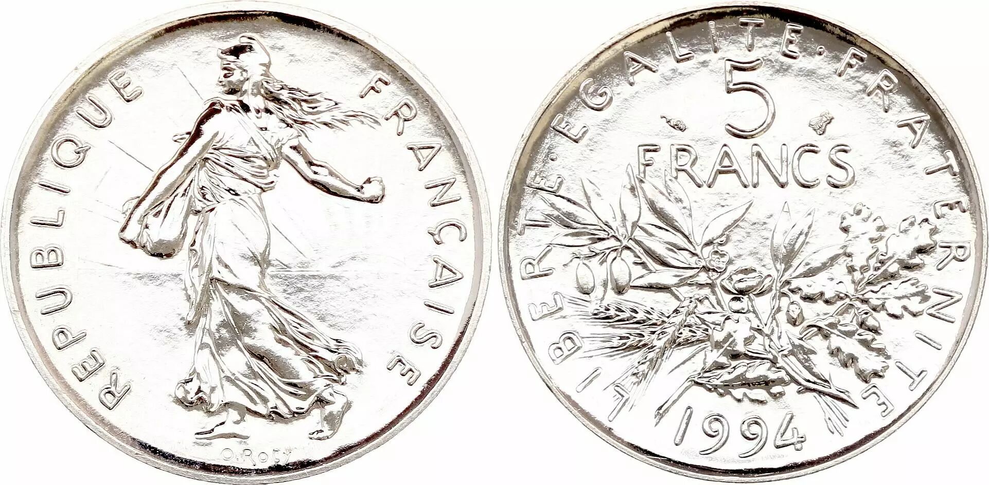 Coin France 5 Francs Woman sowing seed - 1994 BU Bee