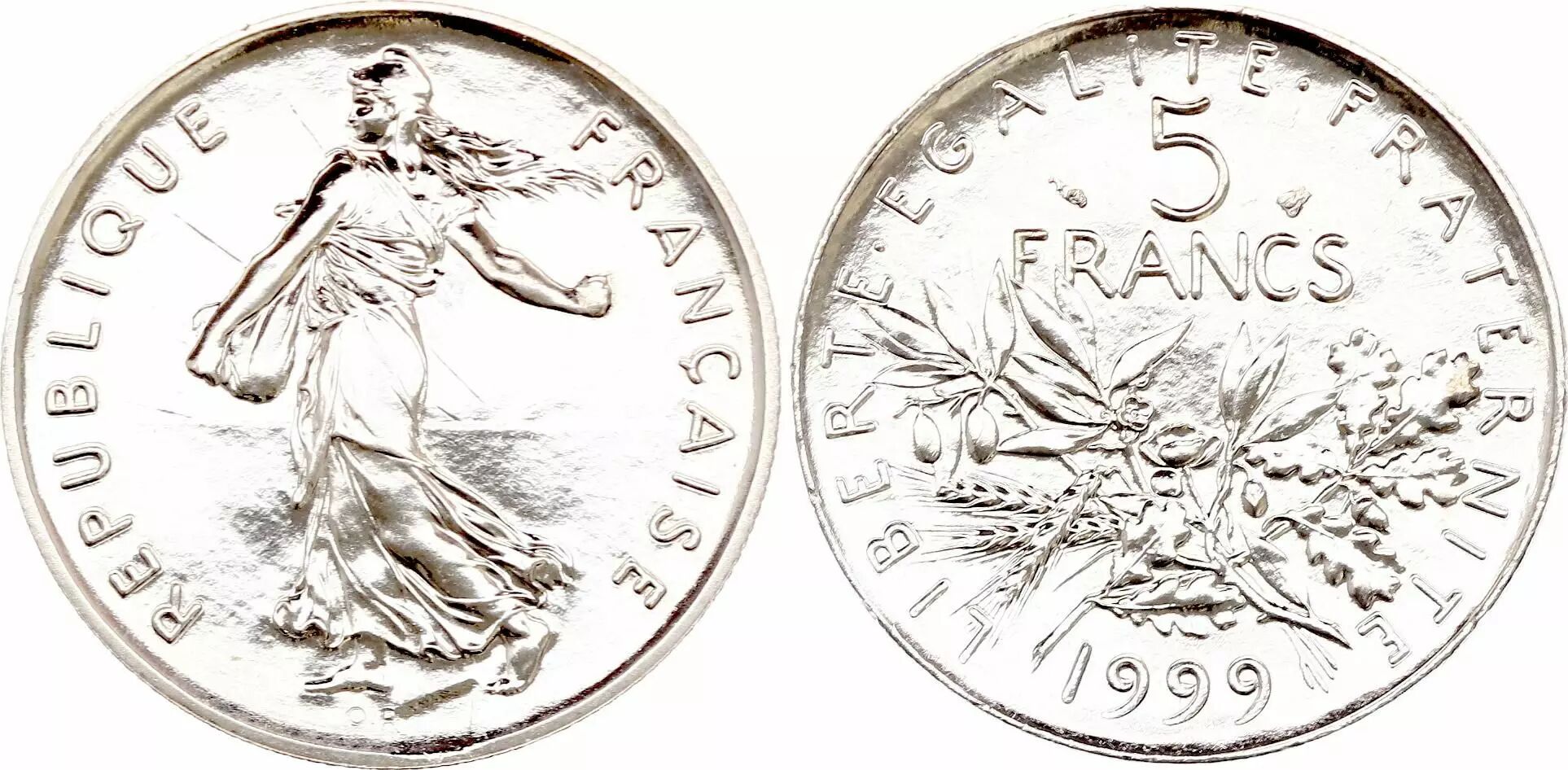 Coin France 5 Francs Woman sowing seed - 1999 BU