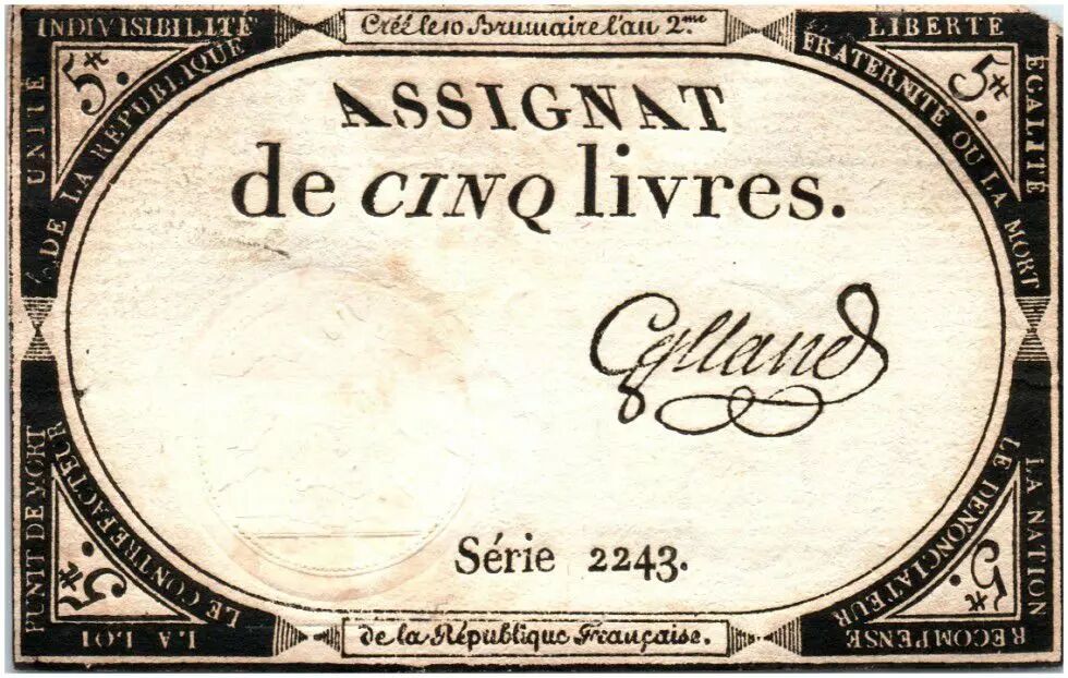 Banknote France 5 Livres 10 Brumaire An II (1793-1793-10-31) - various signatures